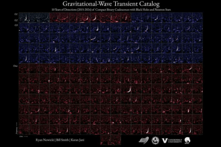 人人引力波天文台蚁合近期发布了最新的探伤遵循汇编。由好意思国激光干与引力波天文台(LIGO)、意大利Virgo干与仪和日本神冈引力波探伤器(KAGRA)构成的LVK调和组织,在《天体物理学杂志快报》特刊上公布了第四版引力波瞬变源目次(GWTC-4)。该目次收录了2023年5月至2024年1月第四次不雅测出手时候探伤到的部分引力波信号。